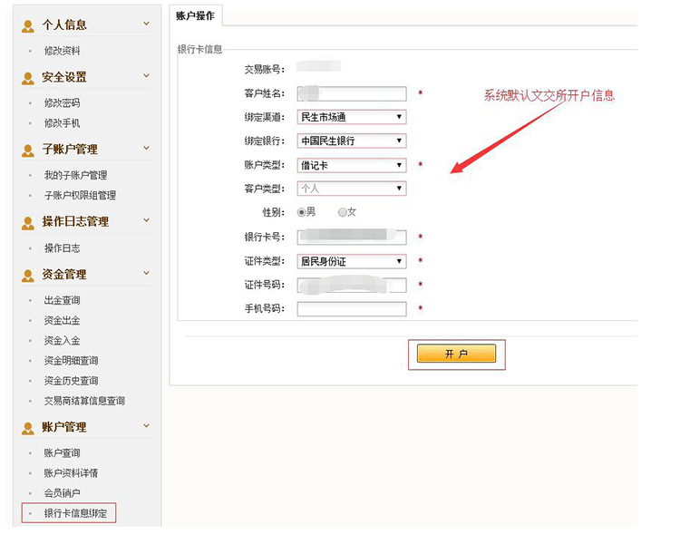 系统会默认文交所开户信息,手机号请填写文交所开户时的手机号,