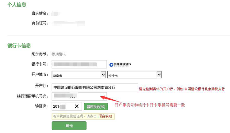机号(银行预留手机号需要和开户手机号一致),点击“确定”
