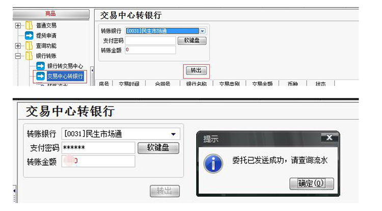 方式二:通过客户端出金: 登录文交所交易客户端,进入“银行转账”-“交易中心转银行”,